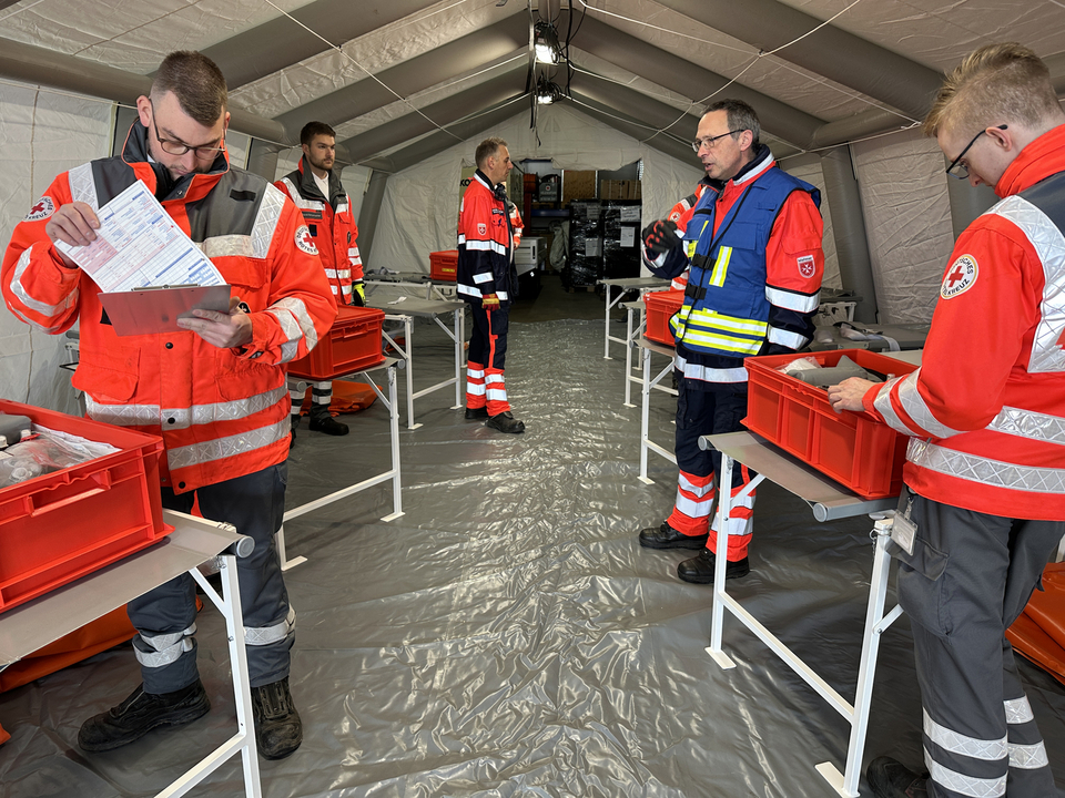 Im Mittelpunkt der Übung stand der Aufbau und die konzeptionelle Durchsprache eines Behandlungsplatzes 50 (BHP 50), der im Katastrophenfall die Kapazität zur Erstversorgung von bis zu 50 Patient*innen bietet. Sowohl das DRK als auch die Malteser errichteten jeweils einen ihren Behandlungsplatz, um ihre Konzepte zu vergleichen, konzeptionell durchzusprechen und voneinander zu lernen. Die teilnehmenden Helfer*innen zogen ein durchweg positives Fazit. Viele konnten sich nun ein klareres Bild von der Umsetzung und den Abläufen machen.