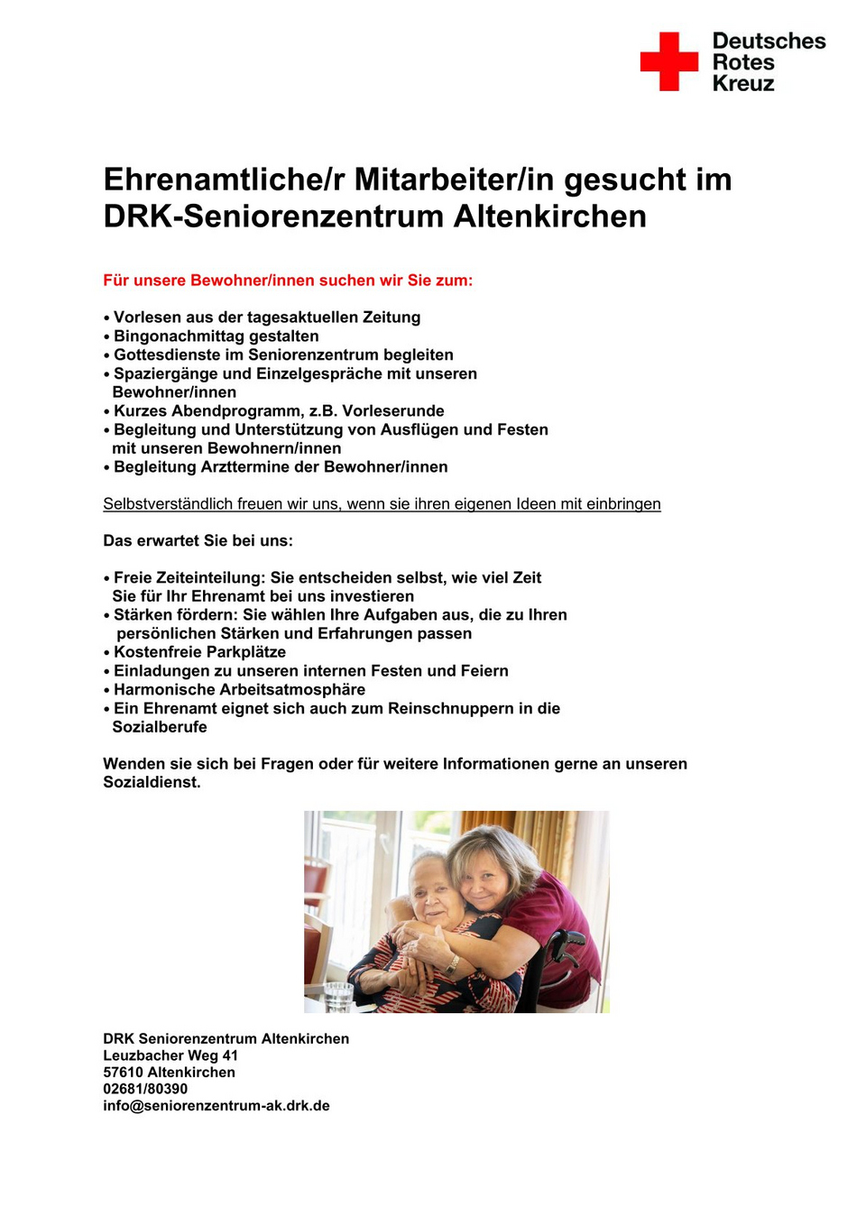 Nehmen sie gerne mit unserem Sozialdienst unter 02681/80390 Kontakt auf. Wir freuen uns auf Sie !