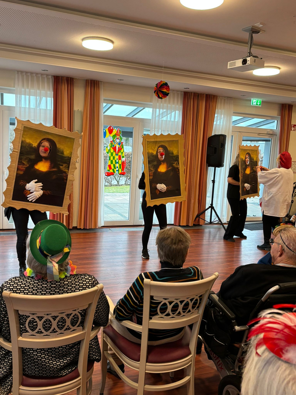 Die Betreuungskräfte hatten extra für diesen närrischen Tag einen Mona Lisa Tanz und einen Sketch einstudiert. Beide ließen kein Auge trocken und brachten das Publikum so richtig in Stimmung.
