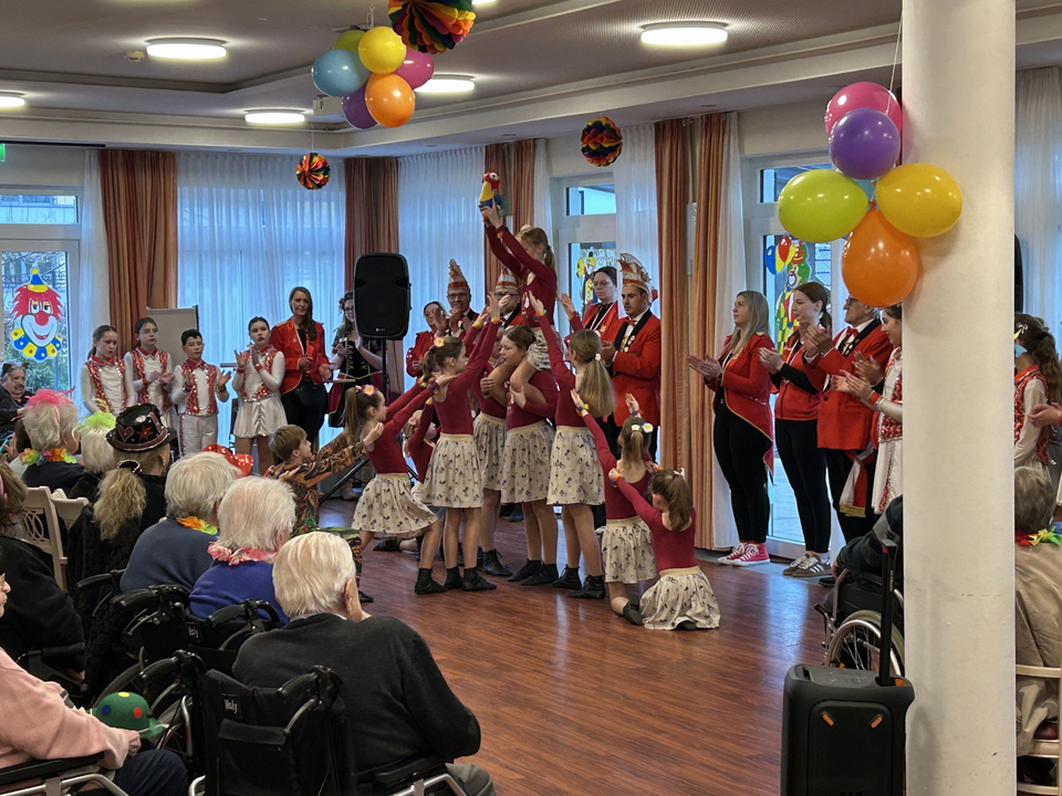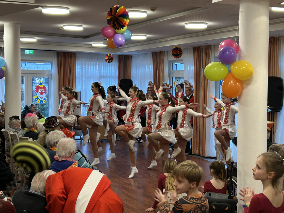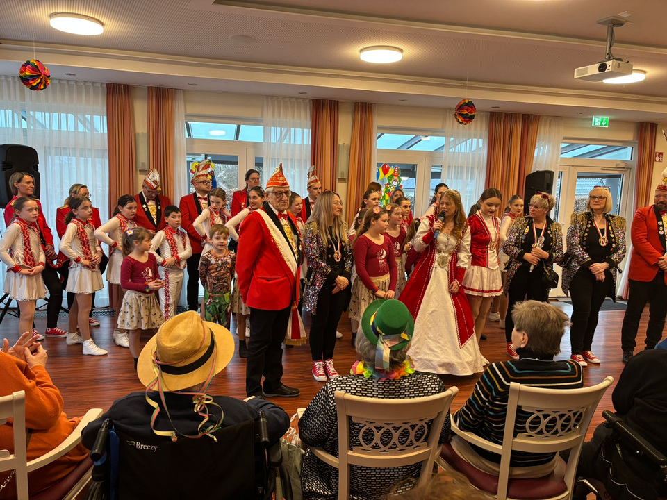Für besondere Höhepunkte sorgten die angereisten Tollitäten und Tanzgruppen aus der Region. Die Jugendtanzgruppe KG Burggraf 48 e.V. begeisterte die närrischen Gäste mit einem schwungvollen Auftritt und brachte gemeinsam mit Kinderprinzessin Alissia närrischen Glanz ins Seniorenzentrum. Mit viel Applaus wurden auch die Tanzgarden der KG Altenkirchen empfangen, die mit ihren präzisen Choreografien beeindruckten. Begleitet wurden sie von Prinzessin Andrea II, die mit herzlichen Worten die Bewohnerinnen und Bewohner grüßte und ihnen eine fröhliche Karnevalszeit wünschte.