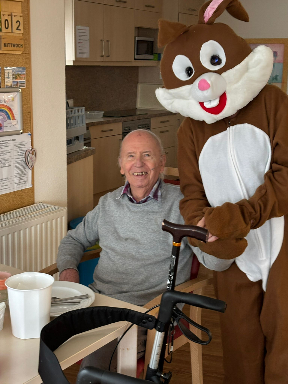 Der Osterhase nahm sich viel Zeit, ging von Zimmer zu Zimmer, wechselte ein paar herzliche Worte und verteilte kleine Osterüberraschungen. Besonders die persönliche Ansprache und die liebevolle Gestaltung des Besuchs machten diesen Nachmittag zu etwas ganz Besonderem. Momente, die noch lange in Erinnerung bleiben werden.