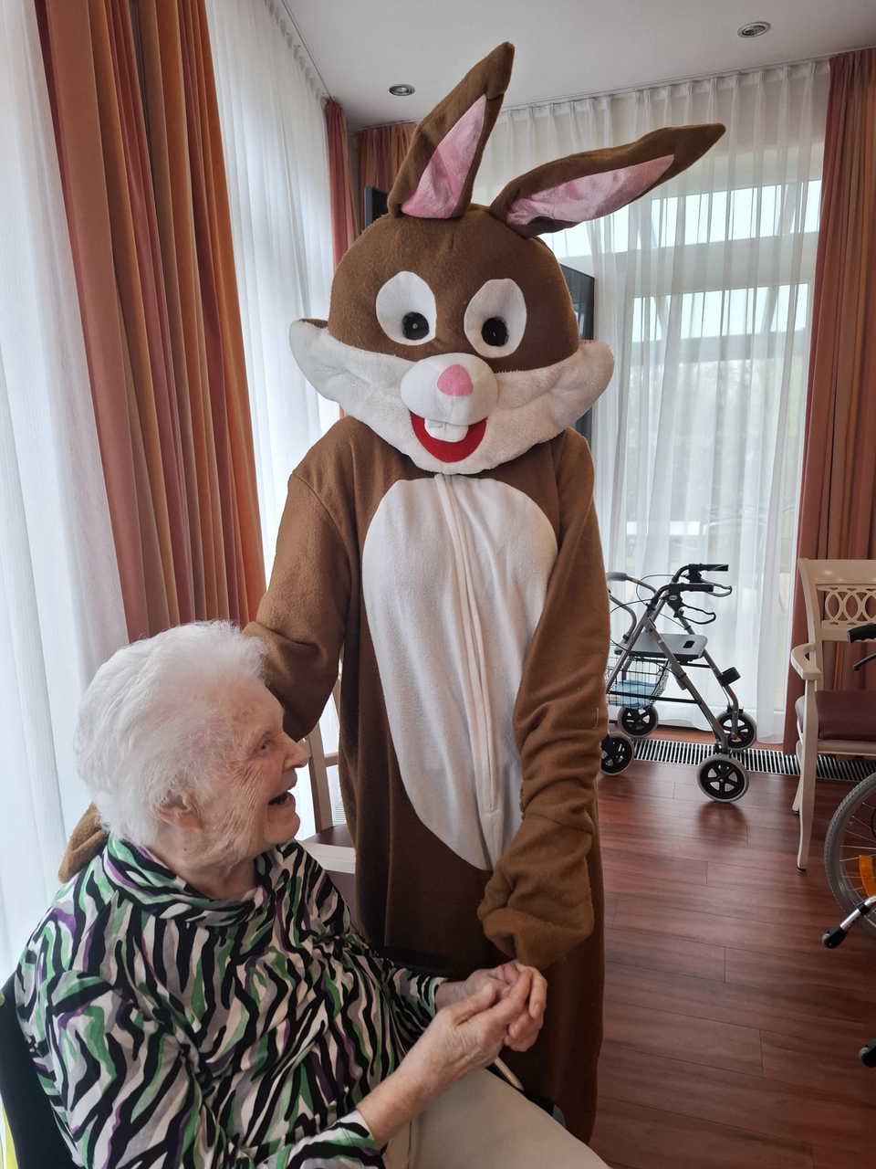 Eine fröhliche Überraschung sorgte in den Tagen vor Ostern für strahlende Gesichter im Seniorenzentrum: Der Osterhase persönlich stattete unseren Bewohnerinnen und Bewohnern einen Besuch ab und brachte damit den Frühling und die Osterfreude direkt ins Haus.