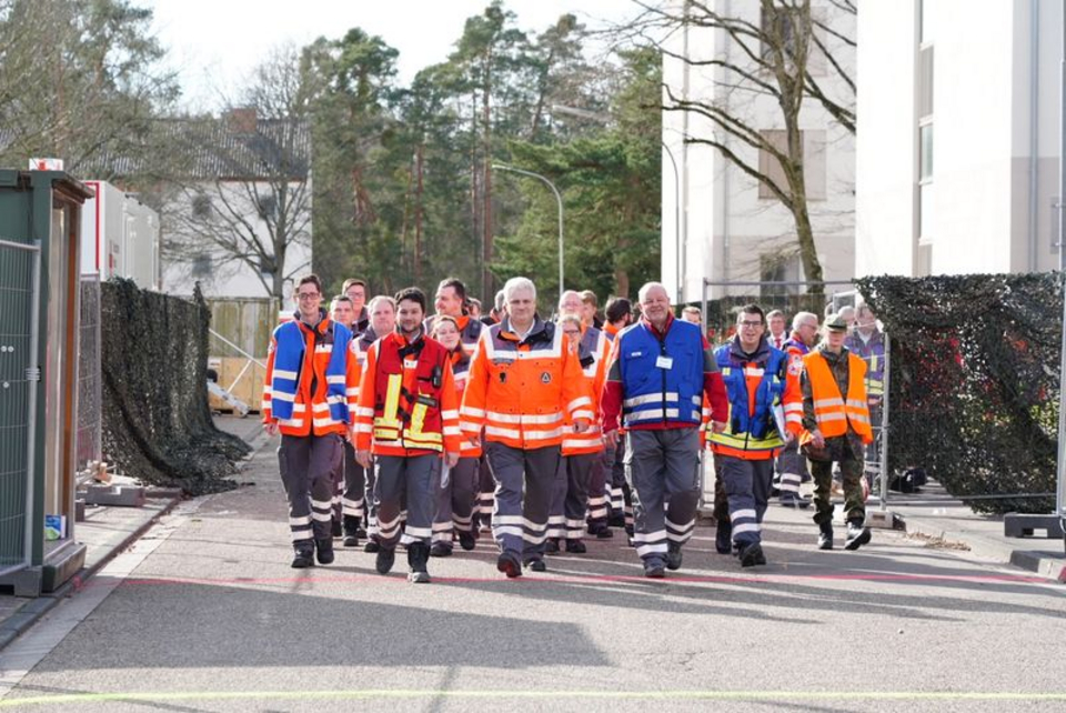 Insgesamt rund 120 DRK-Helferinnen und -Helfer setzten sich 2 Wochen lang für die aus Wuhan Evakuierten in Germersheim ein – ohne Zögern begaben sich 22 von ihnen freiwillig mit in die Quarantäne in der Südpfalz-Kaserne, um die Menschen sozial und medizinisch zu betreuen.