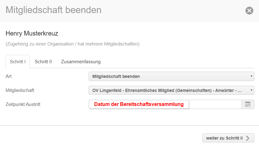 Schritt 2: "Anwärter“ Mitgliedschaft beenden