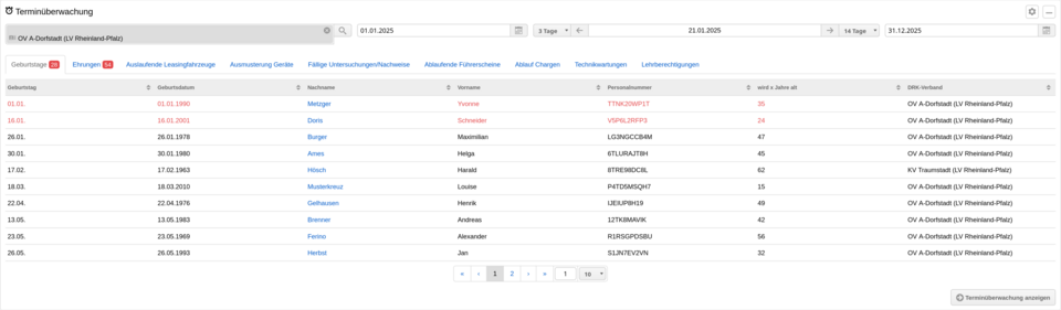 Direkt auf der Startseite kann dies unten eingesehen werden. Je nach Wunsch kann der Zeitraum gewählt werden (hier 01.01.2025 – 31.12.2025).